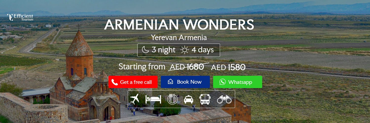Welcome to the landlocked country, famous for its ancient monasteries and historical sites that take the tourists back in time. The 3 nights 4 days Armenia Tour Packages from Dubai by Efficient Tourism will make sure every prime place is covered. Our customized Armenia travel packages are available at the best offers and discounts. Therefore, experience the best of the country as a solo traveler, in a group, or on a honeymoon. Learn about this enigmatic and oldest wine-making country with exclusive holiday packages to Armenia from Dubai.