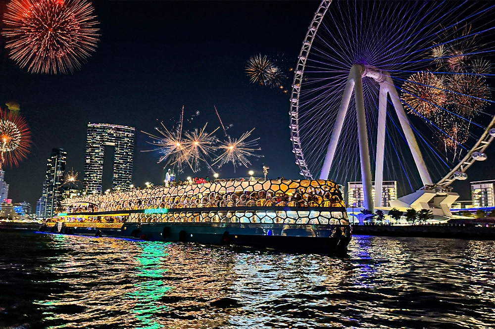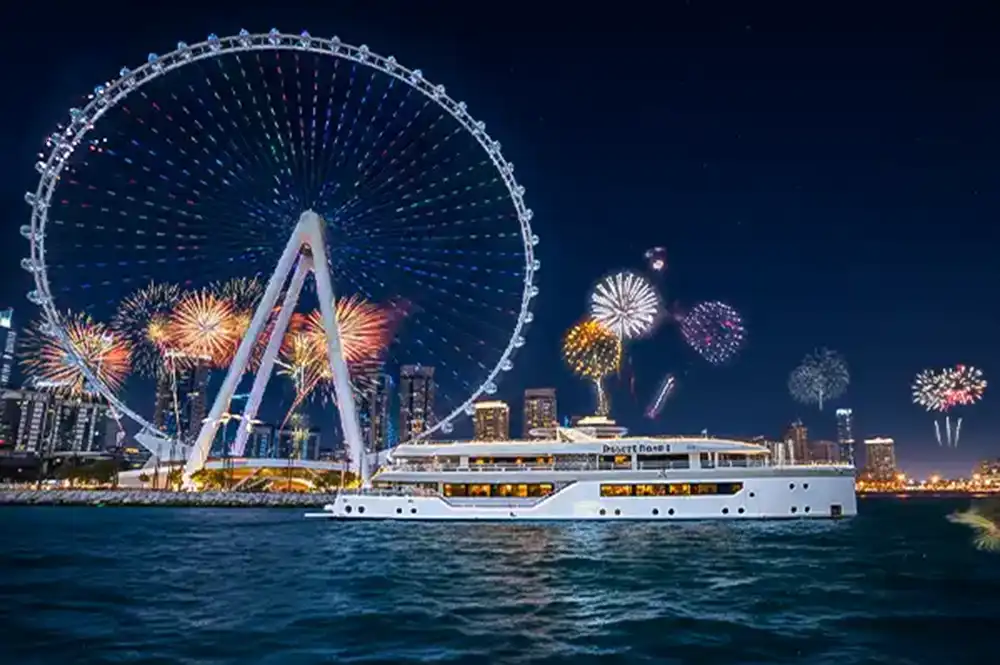 Revel and rejoice in the ultimate New Year celebrations with the Dhow Cruise Marina or Creek. It’s not just an ordinary cruising experience; it is much more than that. Filled with onboard entertainment like music and Tanoura dance shows, mouthful treats, a special onboard cake-cutting ceremony, dinner, and sightseeing, it is one of the most loved activities. Dhow Cruise Marina lets you marvel at the New Year fireworks over Ain Dubai, JBR, Marina Yacht Club, and Palm Jumeirah. However, Dhow Cruise Creek lets you enjoy New Year fireworks over Burj Khalifa, Dubai Creek, Al Seef, and Dubai Festival City.