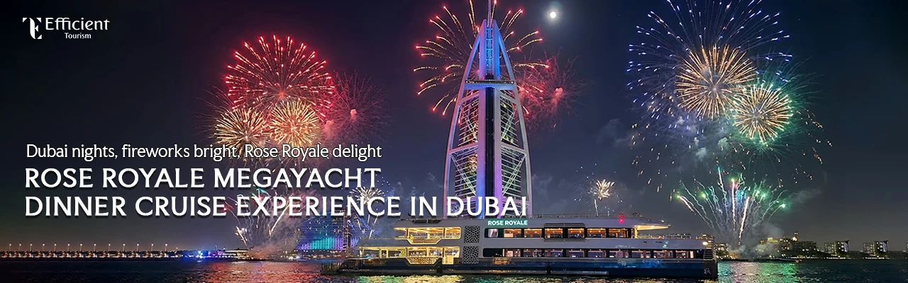 Watching fireworks light up the Dubai skyline while sailing in style is exactly what the 2026 New Year on Rose Royale is all about. This 165-ft luxury megayacht offers an unforgettable night filled with live entertainment, fine dining, and front-row views of the city’s iconic celebrations. With its open-air decks and vibrant vibe, it’s the perfect setting to welcome the new year. Make it a night to remember with Efficient Tourism as you celebrate the 2026 New Year at Rose Royale.